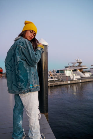 So Gloria painted a jacket. Then another. Then friends wanted one. Then strangers. Our first drop sold out in five minutes. That was 2018. We haven’t slowed down since.