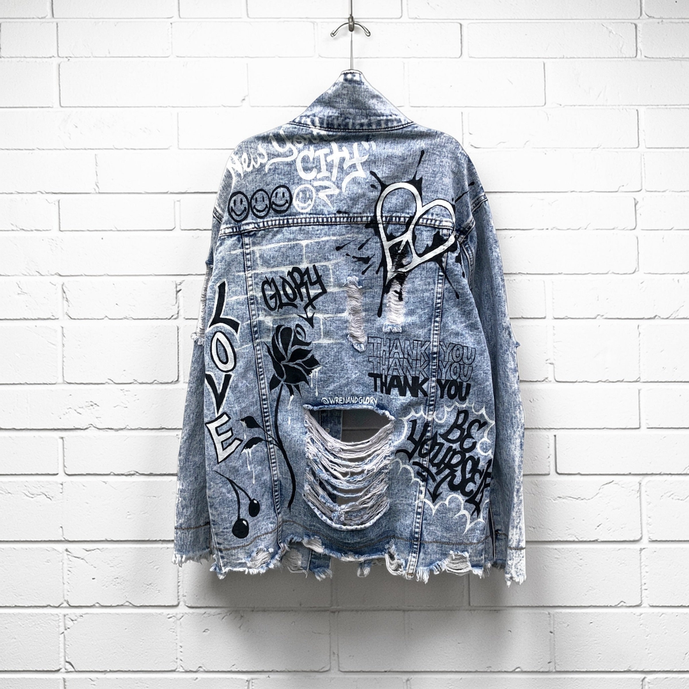 A new best seller - This best fitting, oversized, distress jacket now has a cool, graffiti vibe. Don't forget to choose your name & city! (also makes the PERFECT gift)