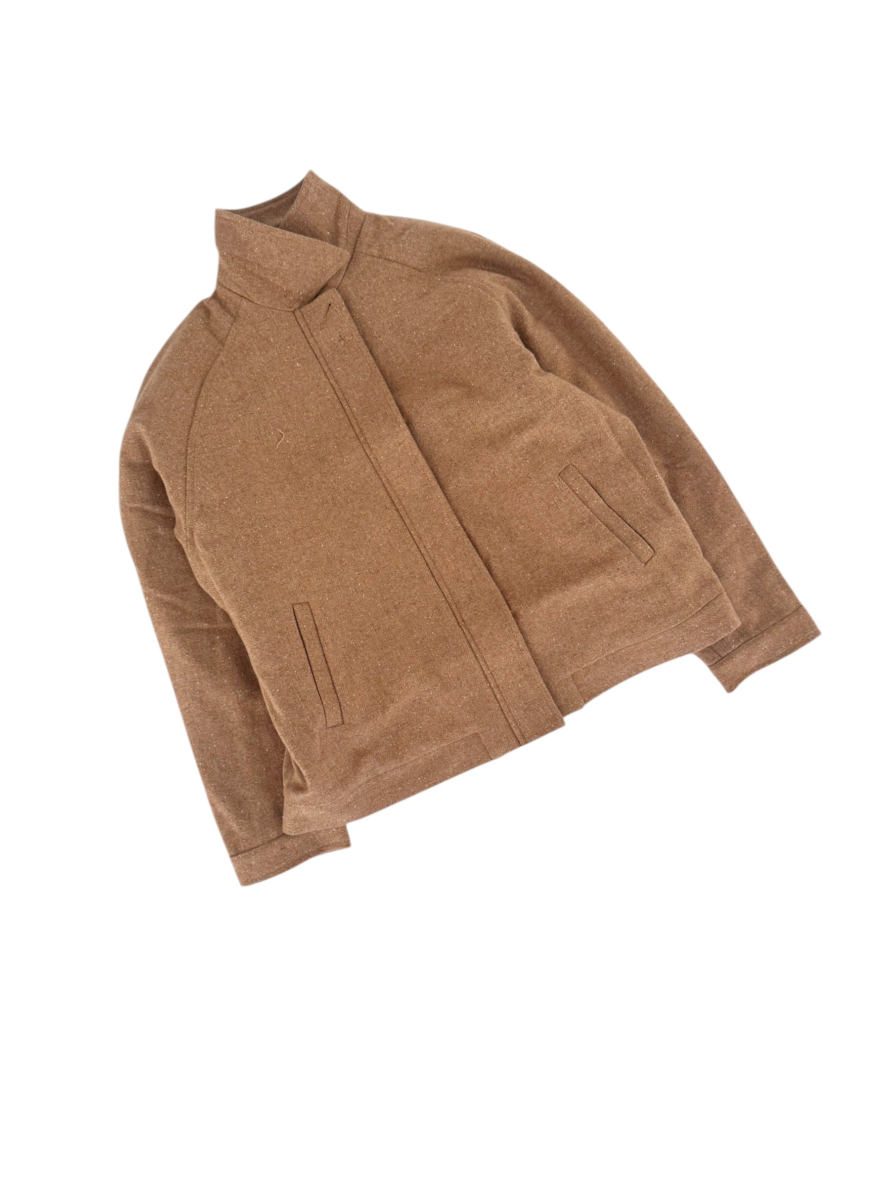 - The perfect wool blend zip front jacket in tan.